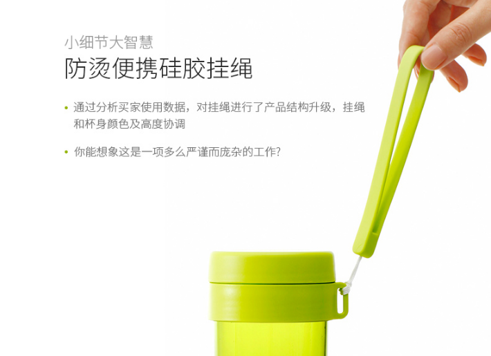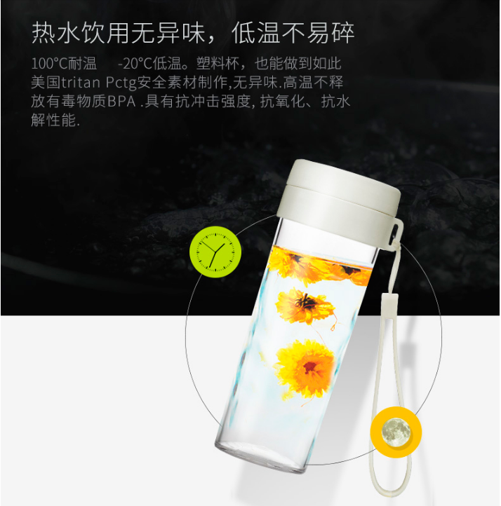 產品特點:傾斜防漏,堅固耐用,無毒塑料;熱水飲用無異味,低溫不易碎